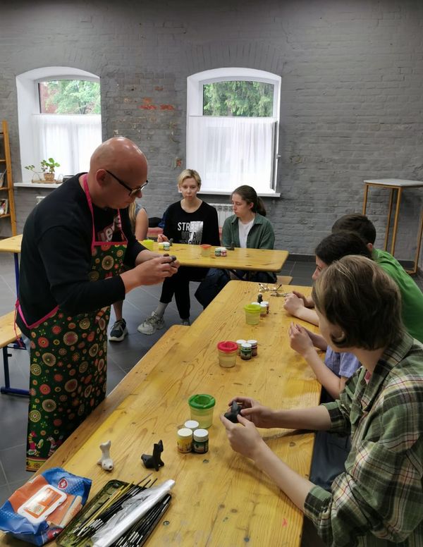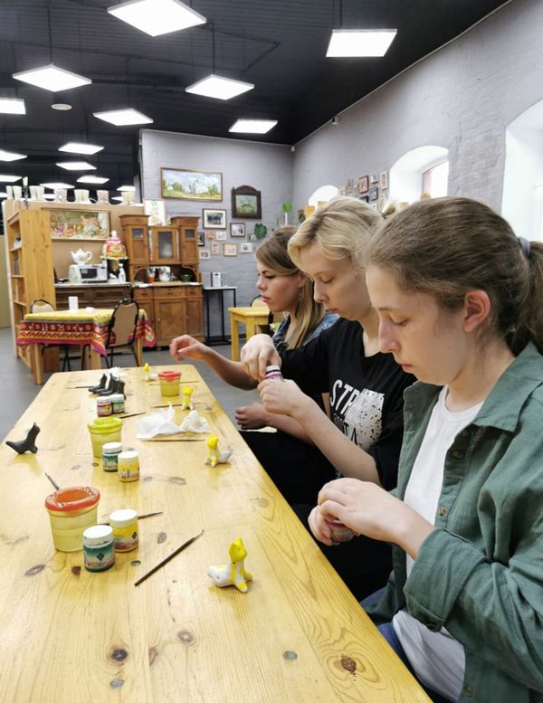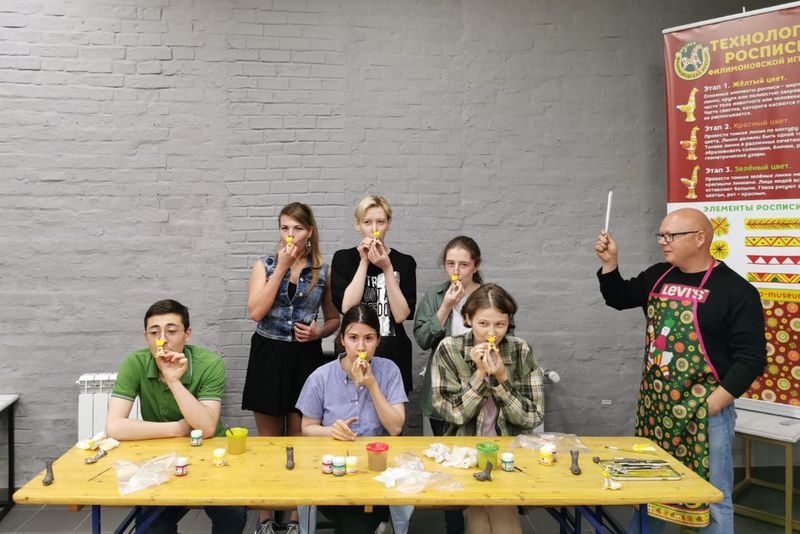 С 8 июня под руководством Юлии Владимировны Родионовой наши ребята провели три насыщенных дня в Одоеве, изучая традиционную культуру родной земли. Им представилась уникальная возможность непосредственно пообщаться с потомственными мастерами филимоновской игрушки Романом Вячеславовичем Орловым и Еленой Алексеевной Орловой, перенять их практический опыт в лепке и росписи игрушки, поработать с музейными предметами, вдохновиться пейзажами Одоевского края.