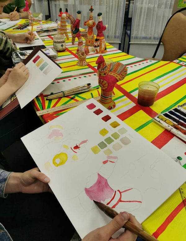 Результатом практики стали открытки и пленэрные этюды, выполненные по мотивам филимоновской игрушки и одоевских достопримечательностей.