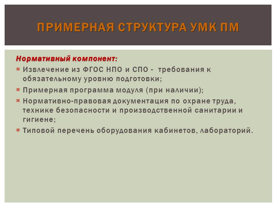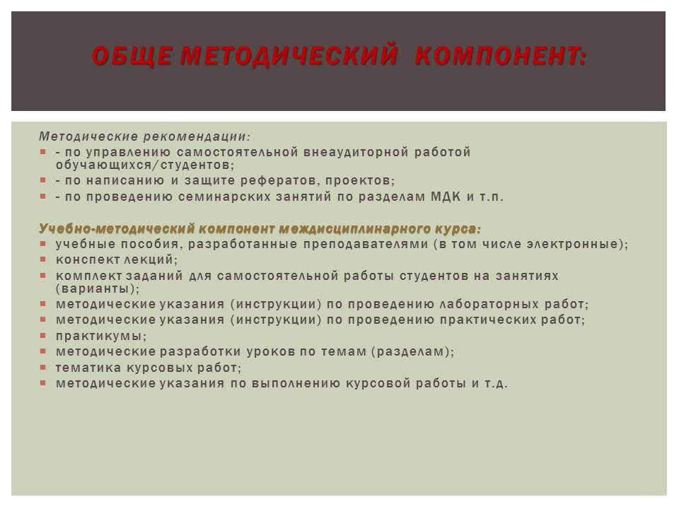 - Примерная структура методического сопровождения учебной дисциплины и профессионального модуля (Слугина Нелли Валерьевна, руководитель МО, зам. директора по НМР ГОУ СПО ТО «Тульский областной колледж культуры и искусства»).