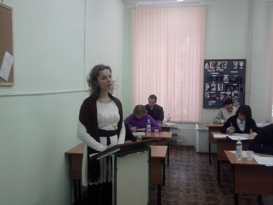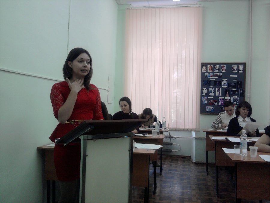 Ответы студентов содержали не только теоретическую часть. Так студентами специализации «Постановка театрализованных представлений» были представлены методические разработки и видеоматериалы уроков по сценической речи, актерскому мастерству. Наиболее ярким стал ответ Мелендиной В.С.